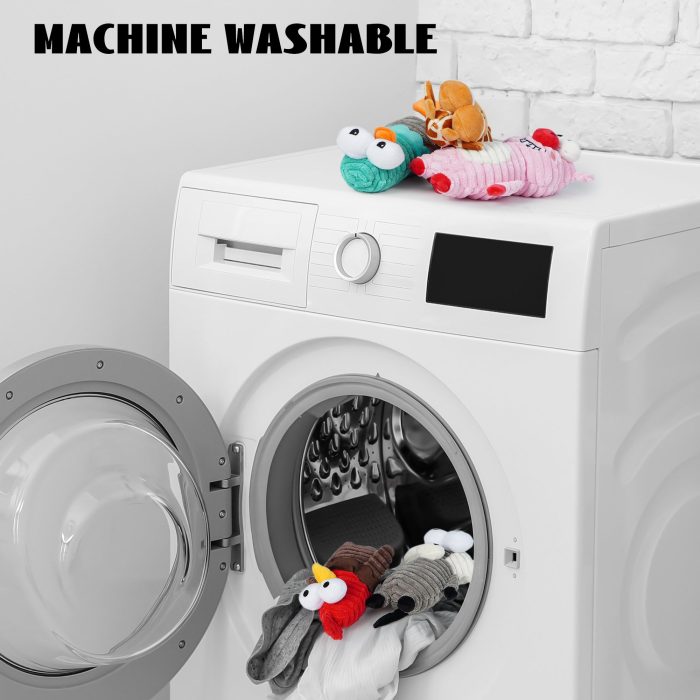 • The toys feature striped velvet material that not only adds texture and fun but also helps clean your dog’s teeth and gums during play, contributing to their dental health.
